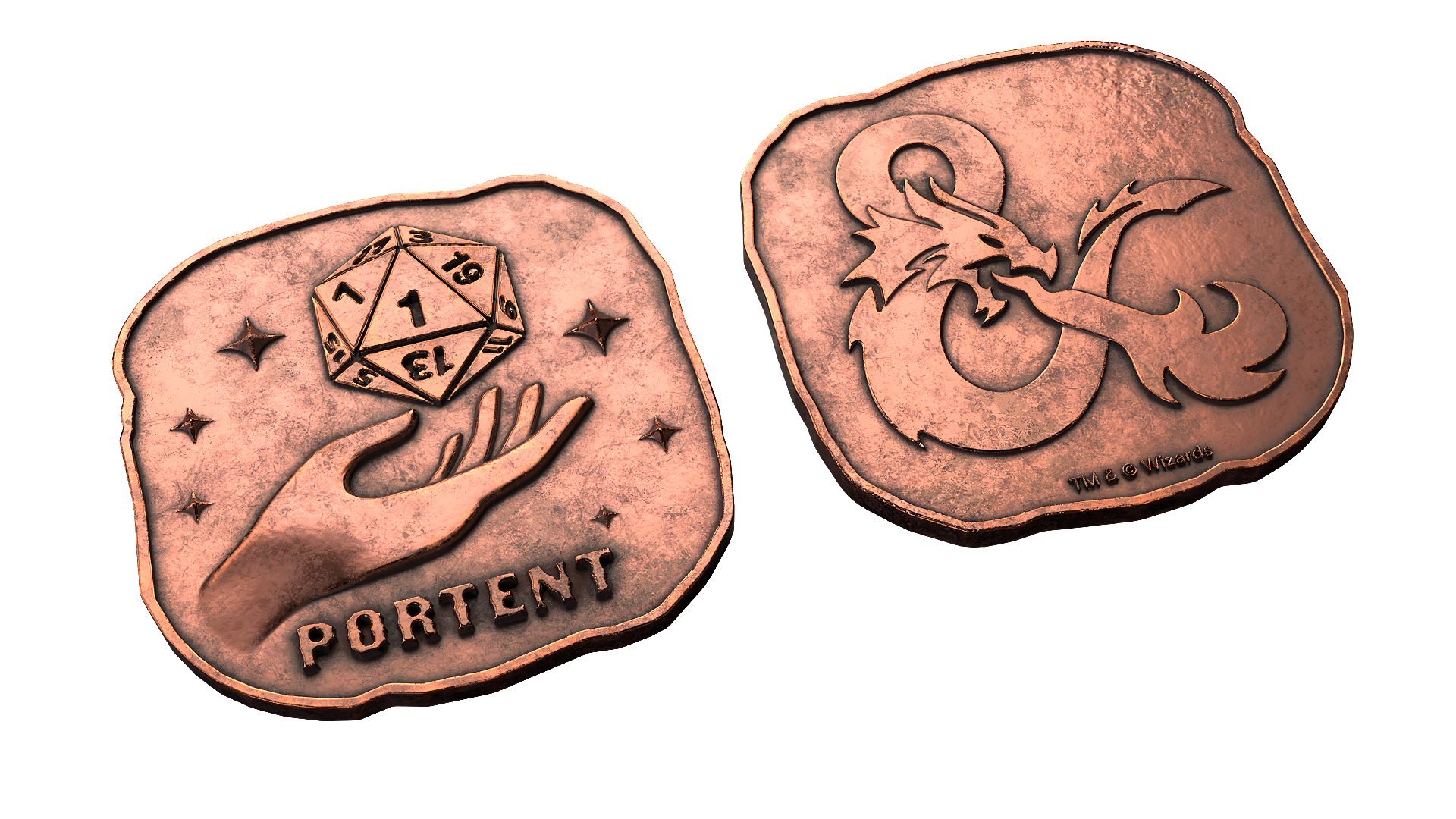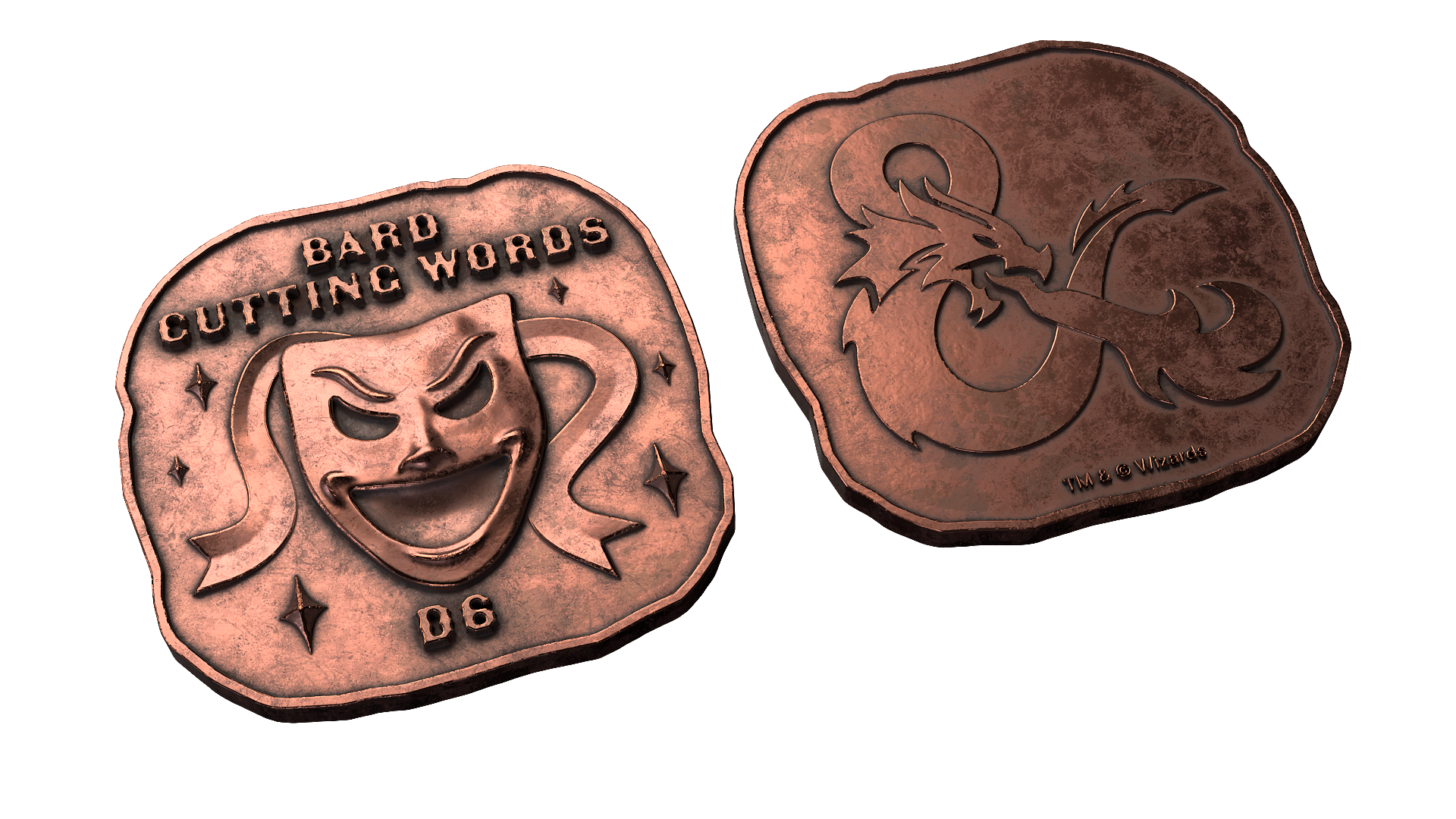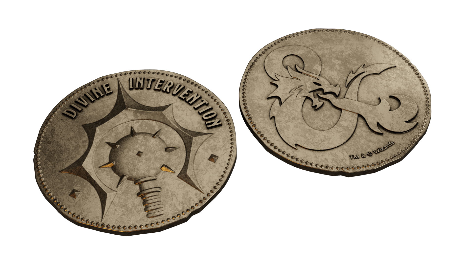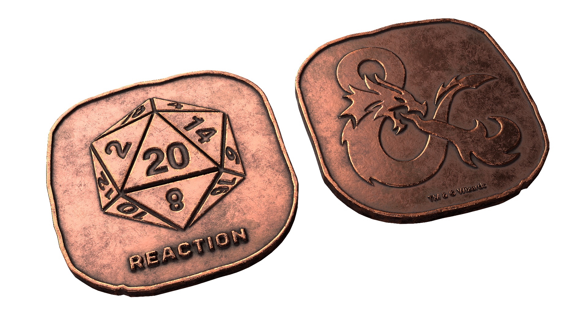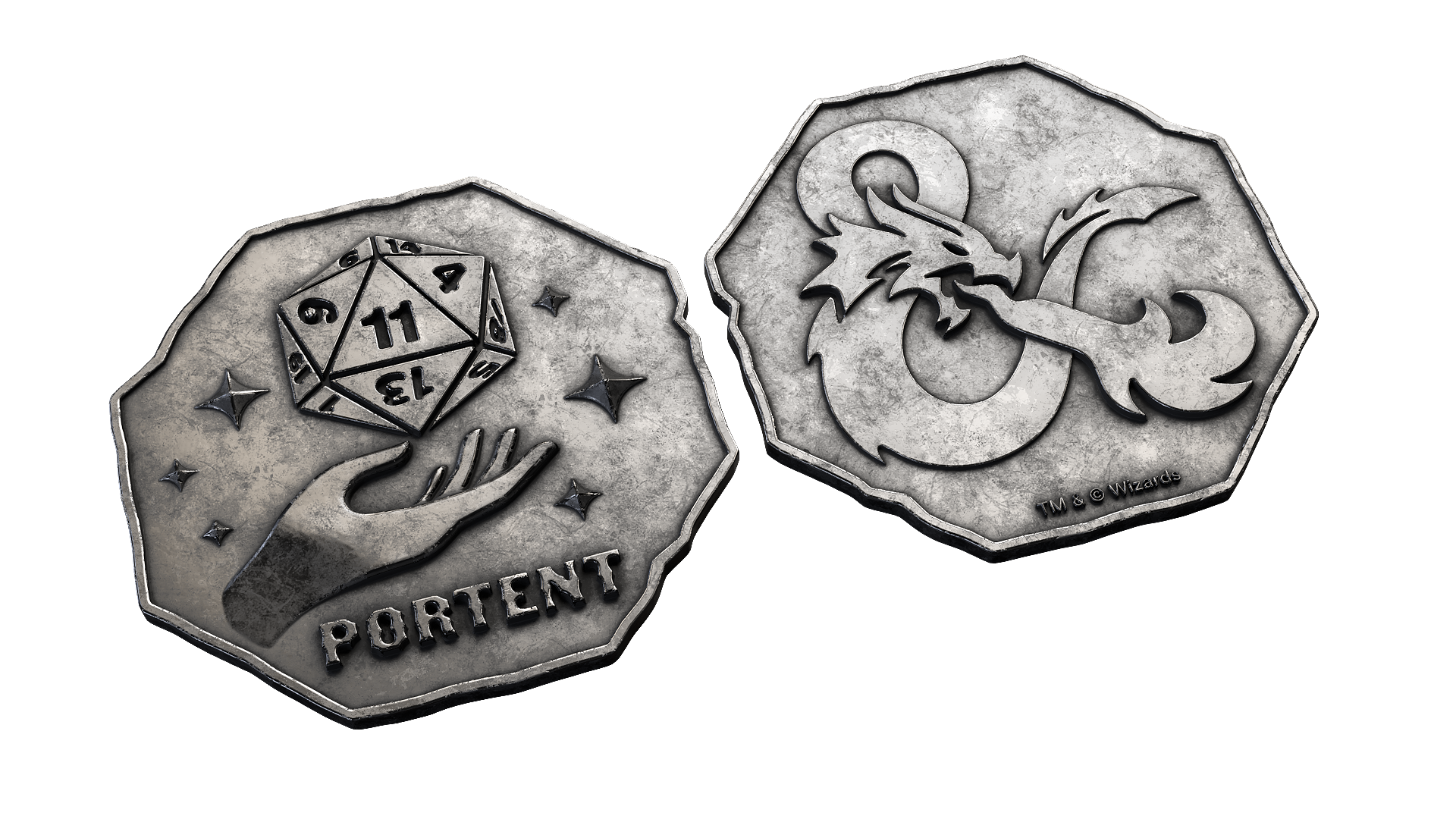 1x ABILITY COIN Contains one of our 22 original 40mm metal dice coins featuring a unique design on each face and the Dungeons & Dragons logo on the back.