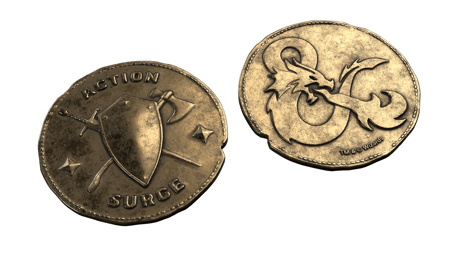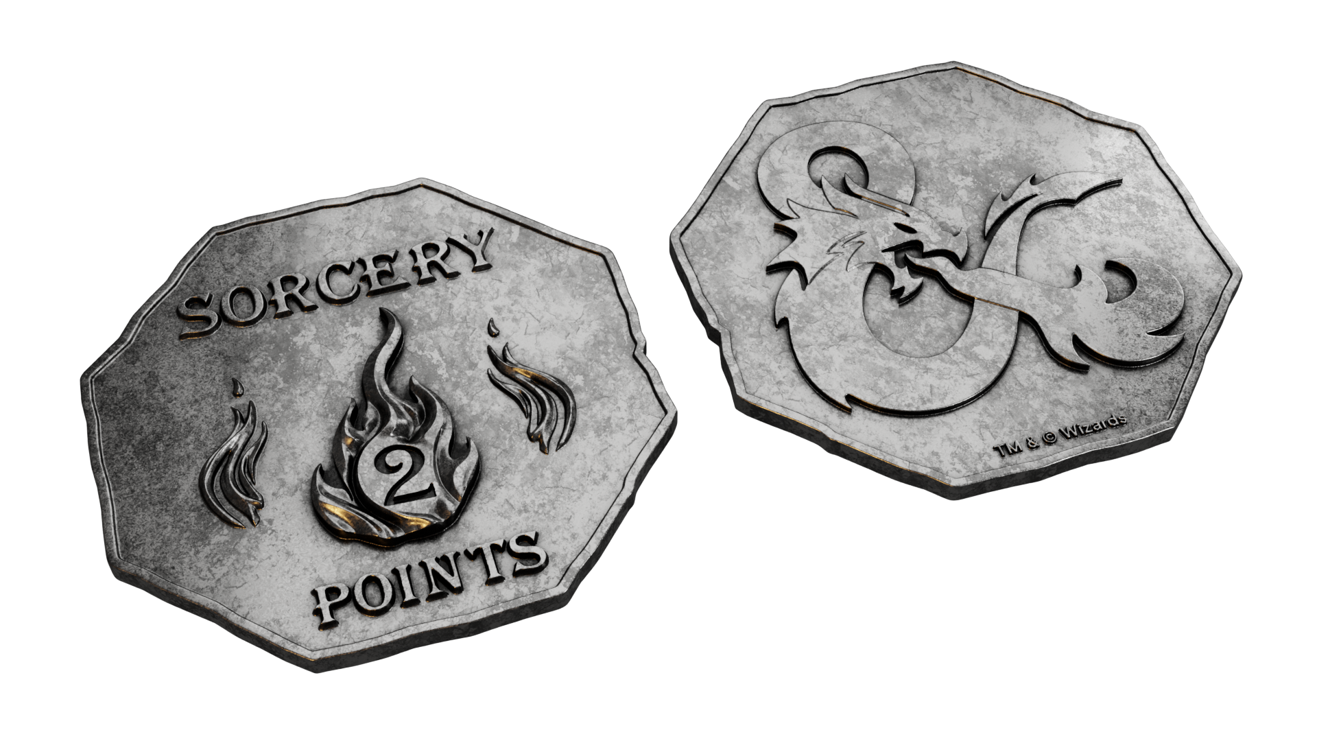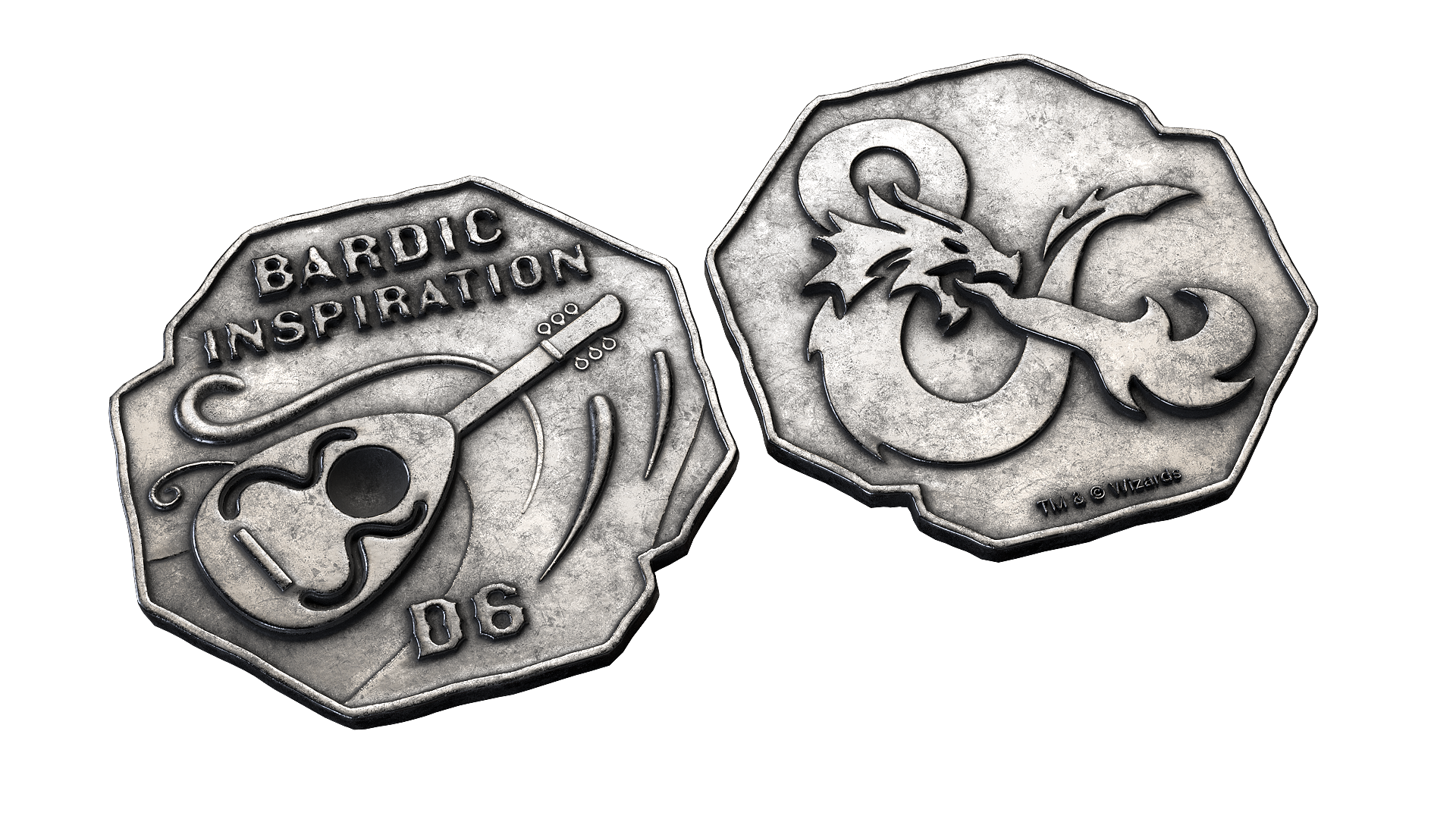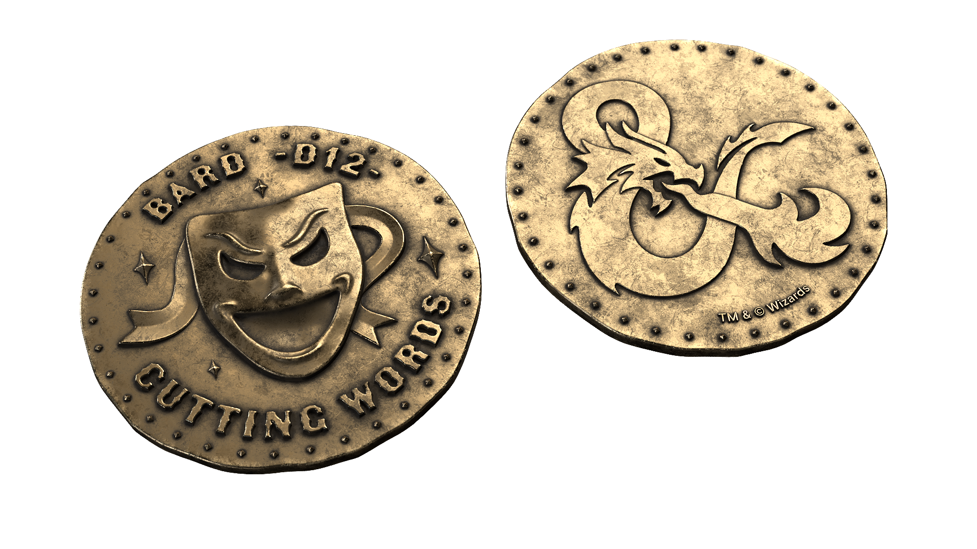 1x ABILITY COIN Contains one of our 22 original 40mm metal dice coins featuring a unique design on each face and the Dungeons & Dragons logo on the back.
