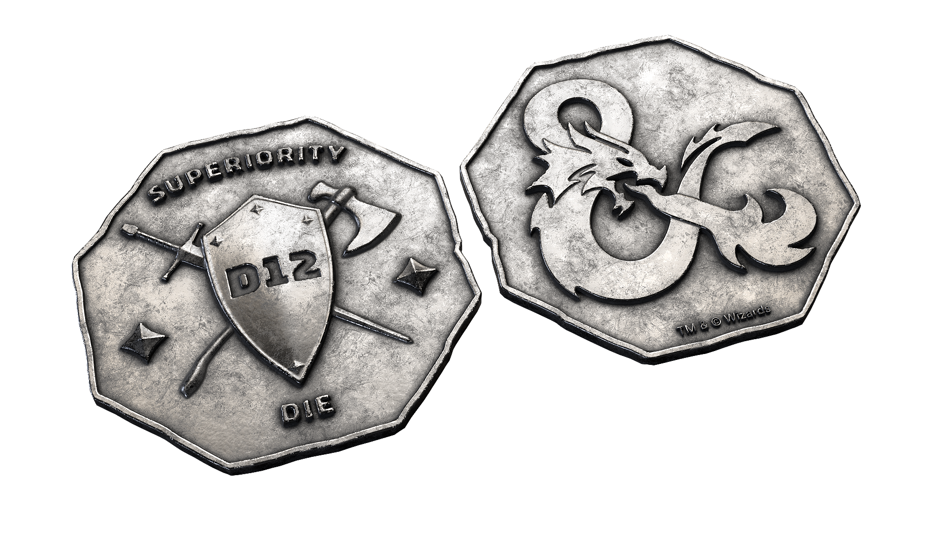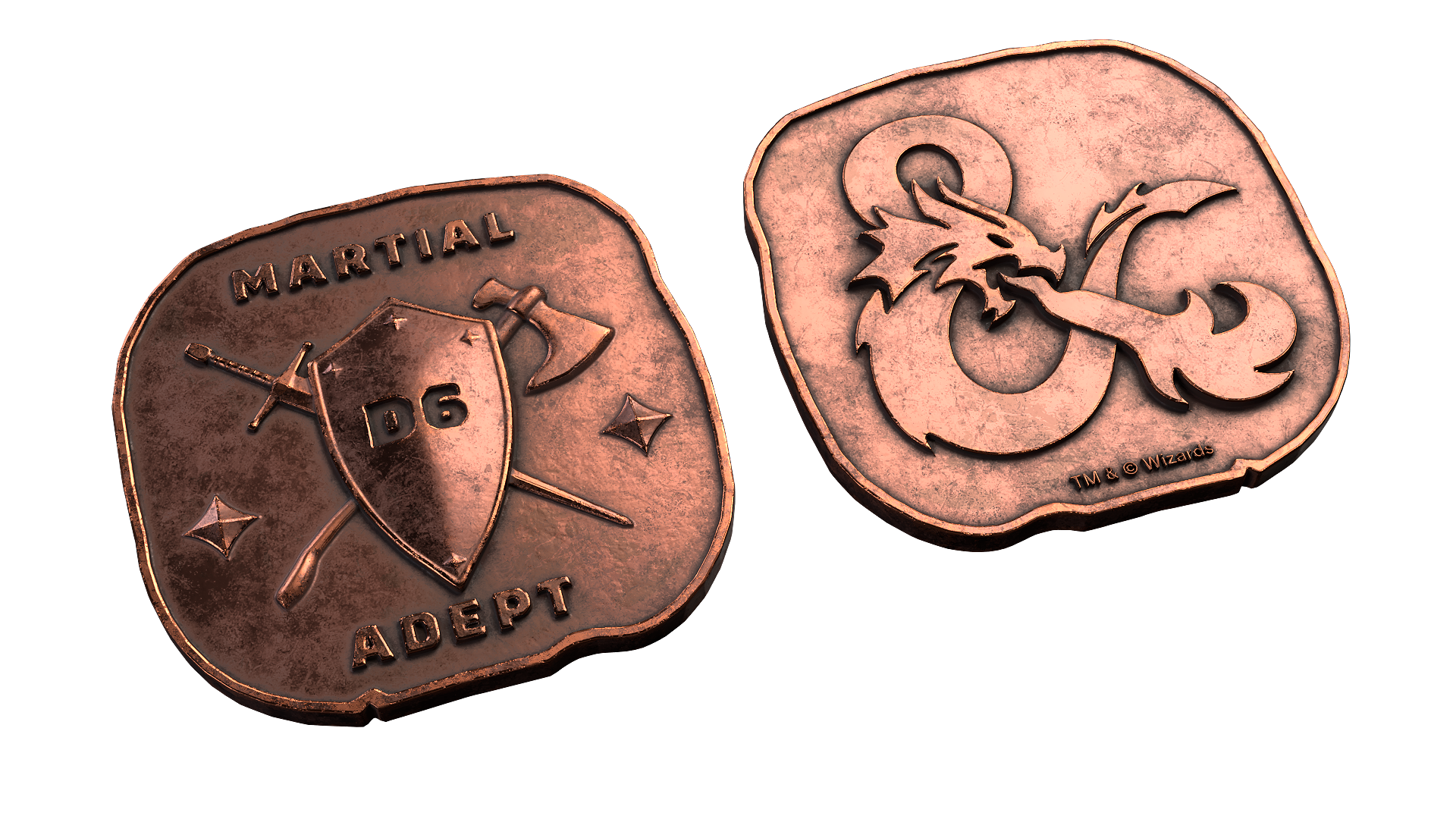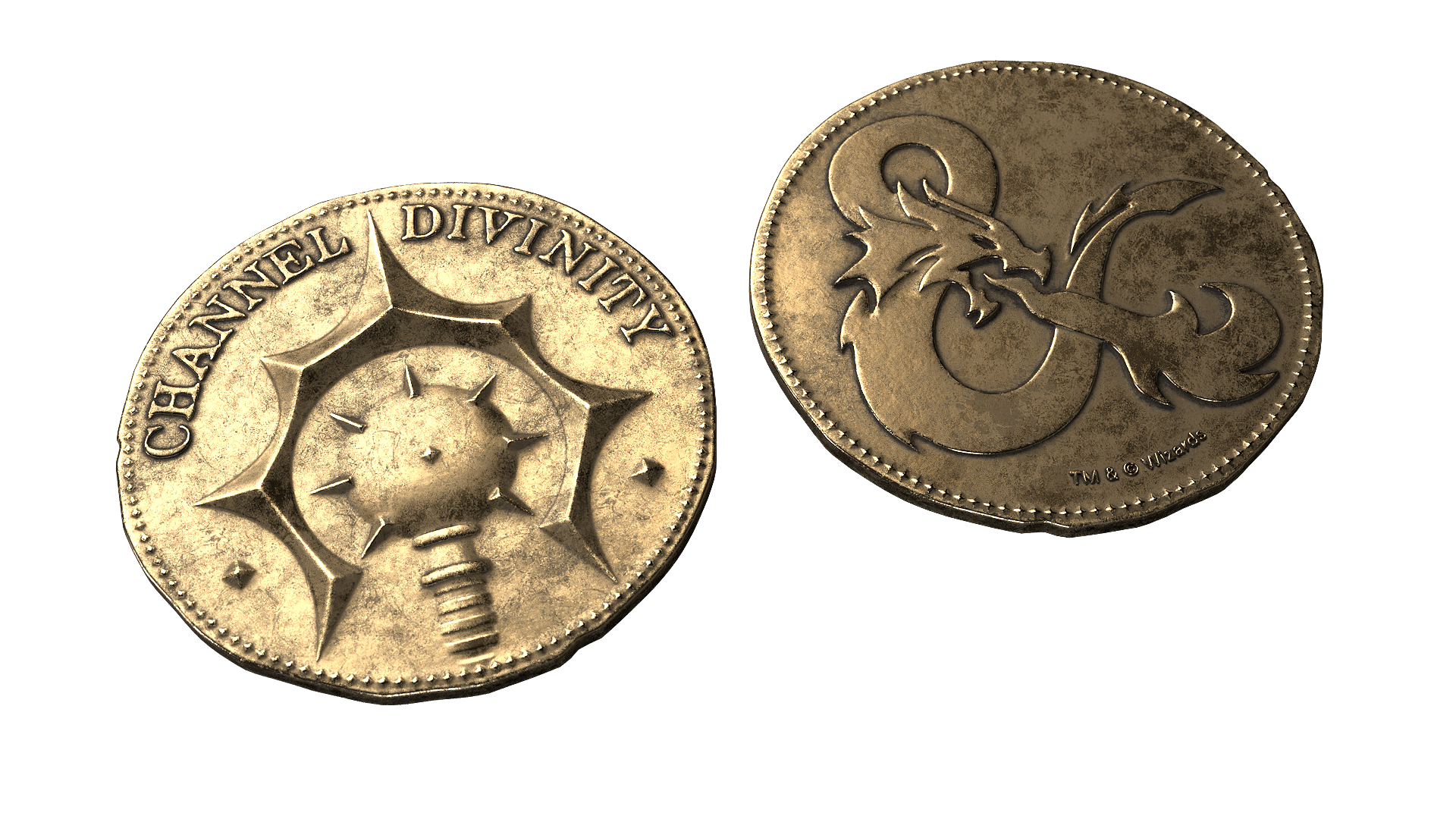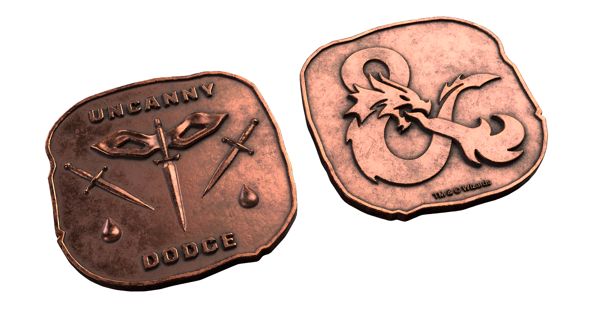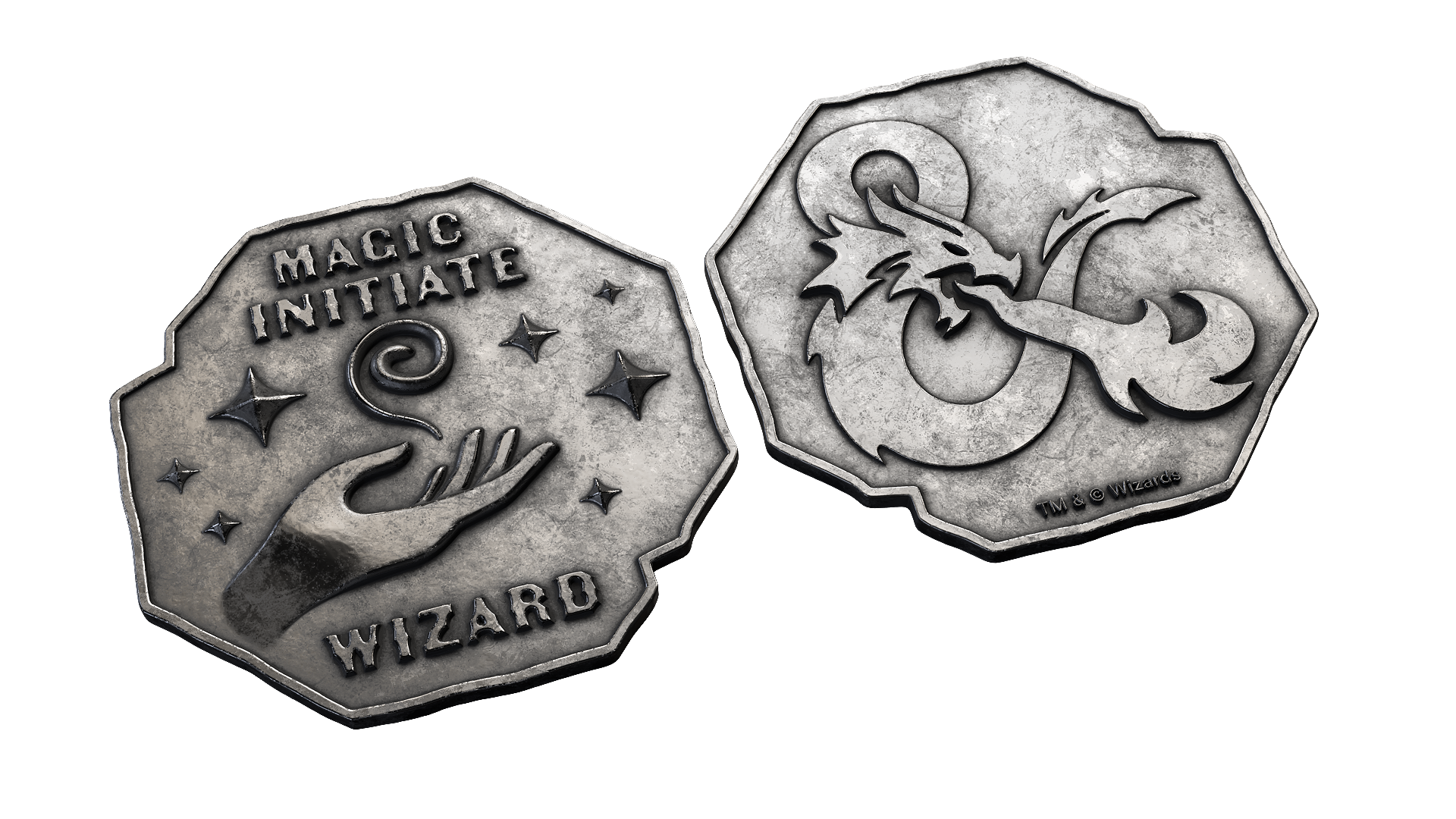 1x ABILITY COIN Contains one of our 22 original 40mm metal dice coins featuring a unique design on each face and the Dungeons & Dragons logo on the back.
