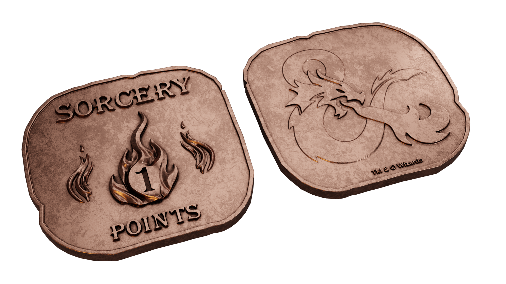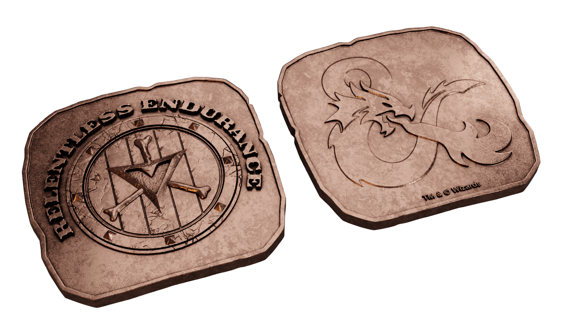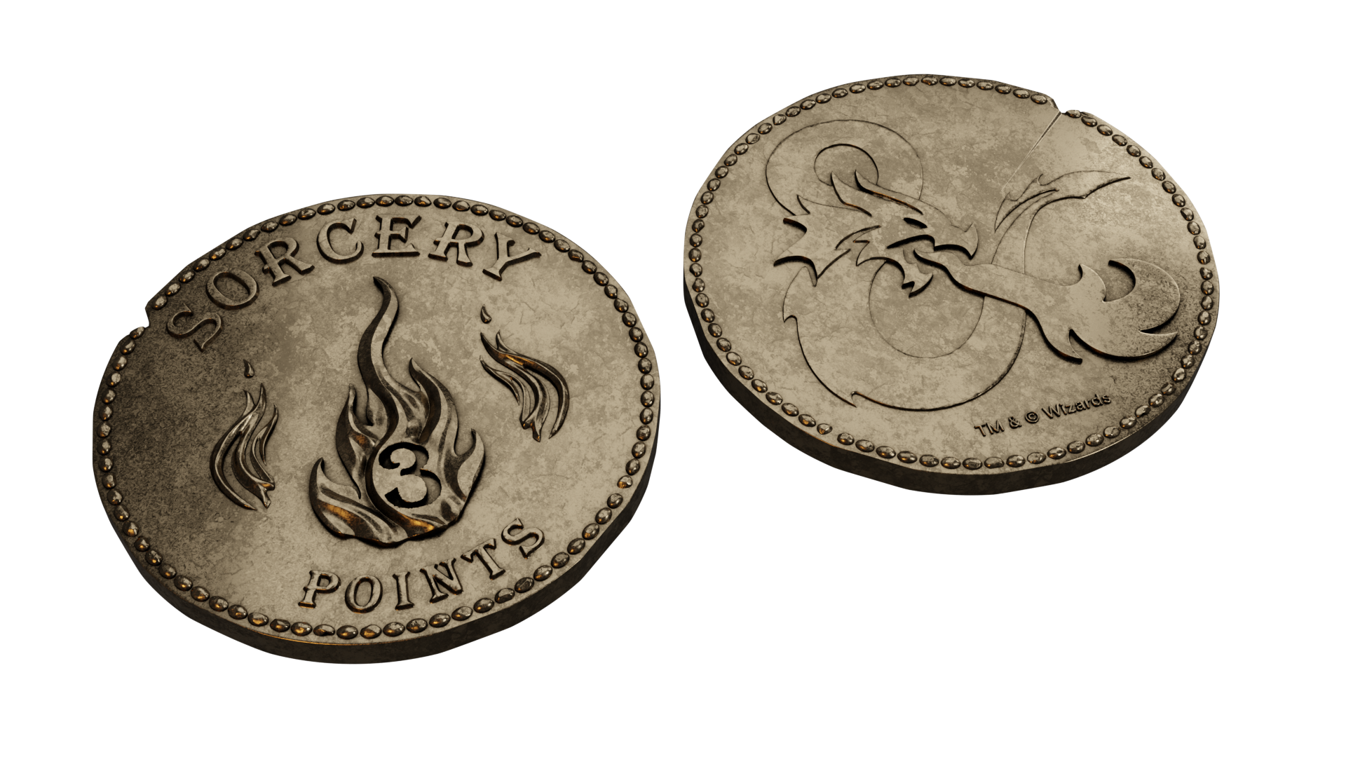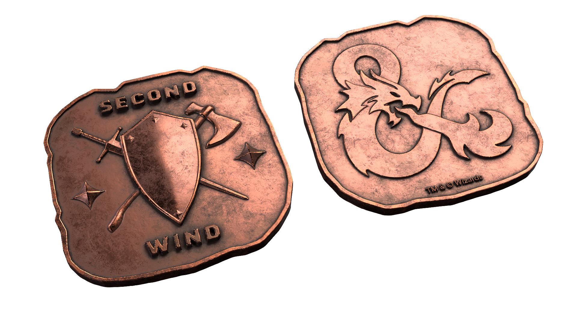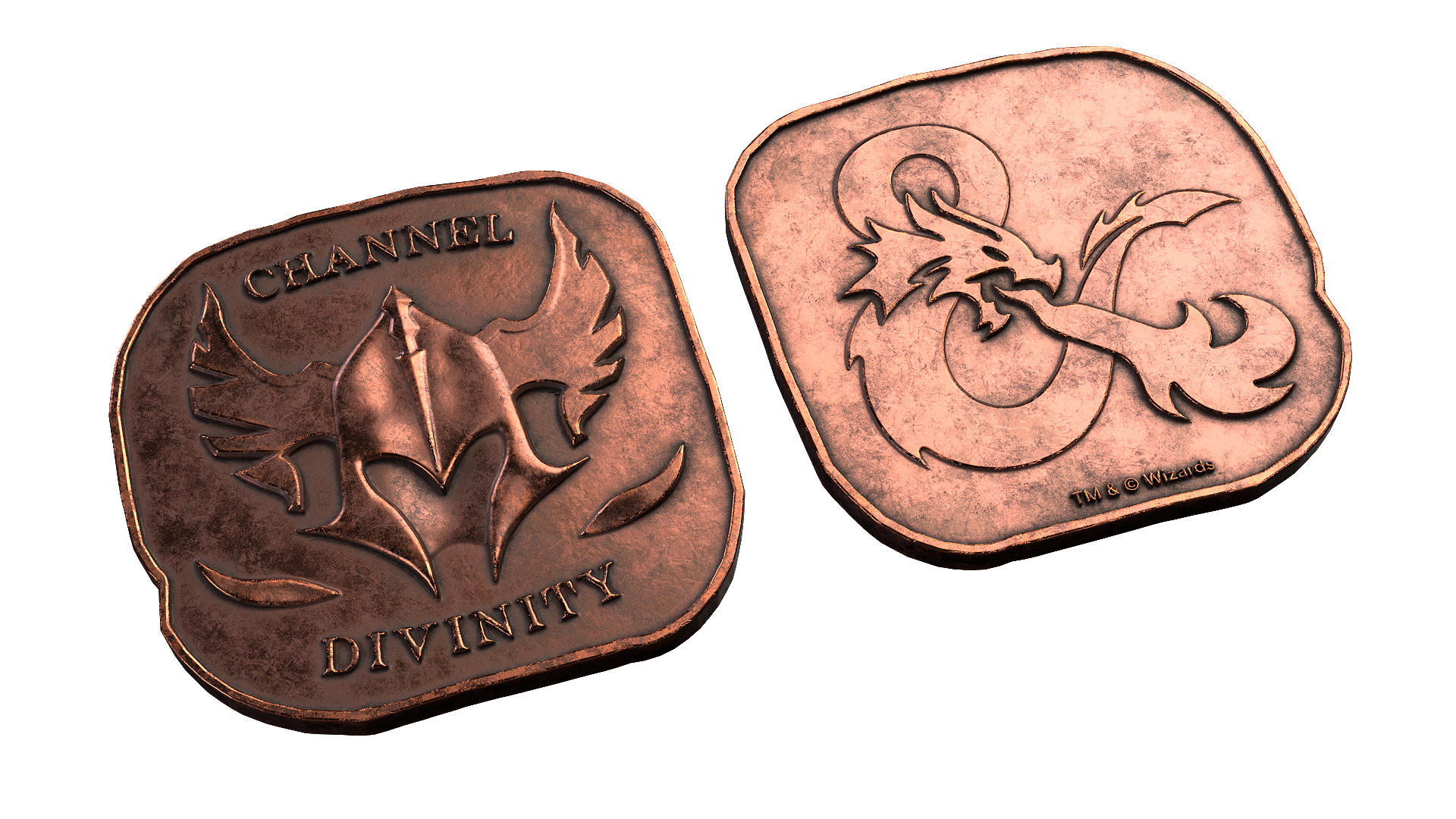 1x ABILITY COIN Contains one of our 22 original 40mm metal dice coins featuring a unique design on each face and the Dungeons & Dragons logo on the back.