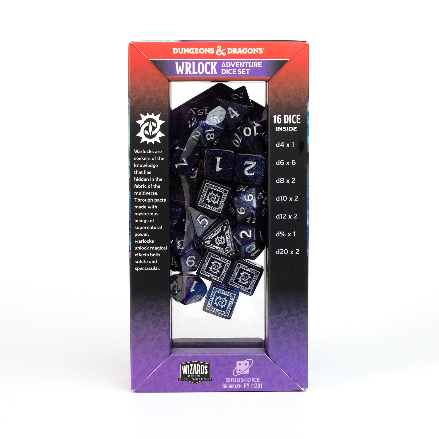 The Warlock set includes 16 dice